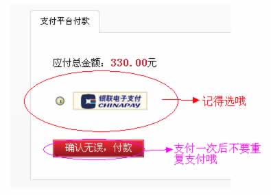 下订单后就会出现支付页面、完成支付就可以了哦~目前只提供银联在线支付哦~这是支付页面,订单金额无误后点击确认无误,付款